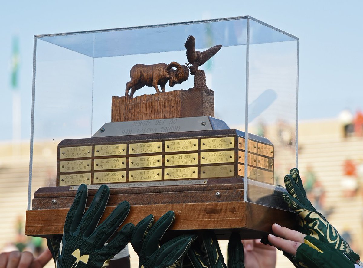 Aunque el primer enfrentamiento del Ram-Falcon Trophy fue en 1957, la rivalidad se fue fraguando poco a poco debido a la cercanía de ambas universidades y debido a la relación de los cuerpos militares con la Colorado State University. Pero fue en 1980 cuando se oficializó esta rivalidad con un trofeo de madera tallada en el que el carnero de Colorado State embiste al halcón de Air Force.